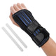 Additionally, a wrist splint or brace with a lightweight metal palmar bar prevents wrist bending, supporting it in a neutral position and reducing strain on tendons, with proper fitting and usage guided by medical advice being essential for effectiveness.